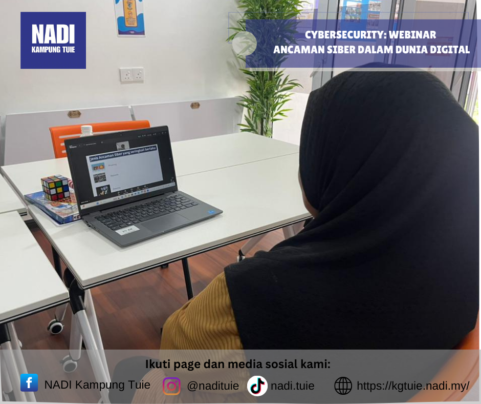 Program Cybersecurity – Webinar Ancaman Siber dalam Dunia Digital telah dilaksanakan pada Khamis, 15 Januari 2026 dari jam 3.00 petang hingga 4.00 petang, secara online, dengan pusat pelaksanaan bertempat di NADI Kampung Tuie.
