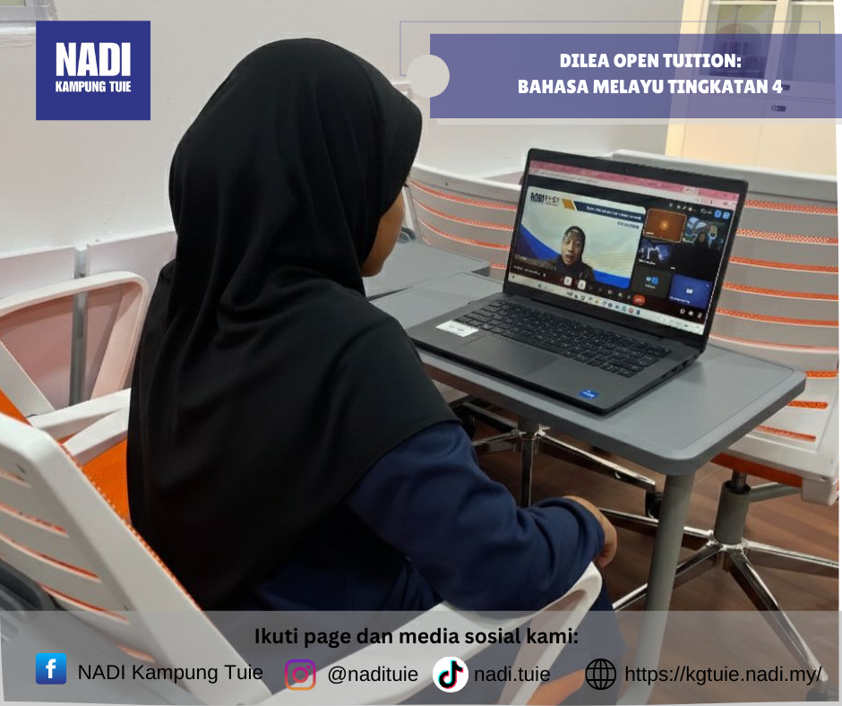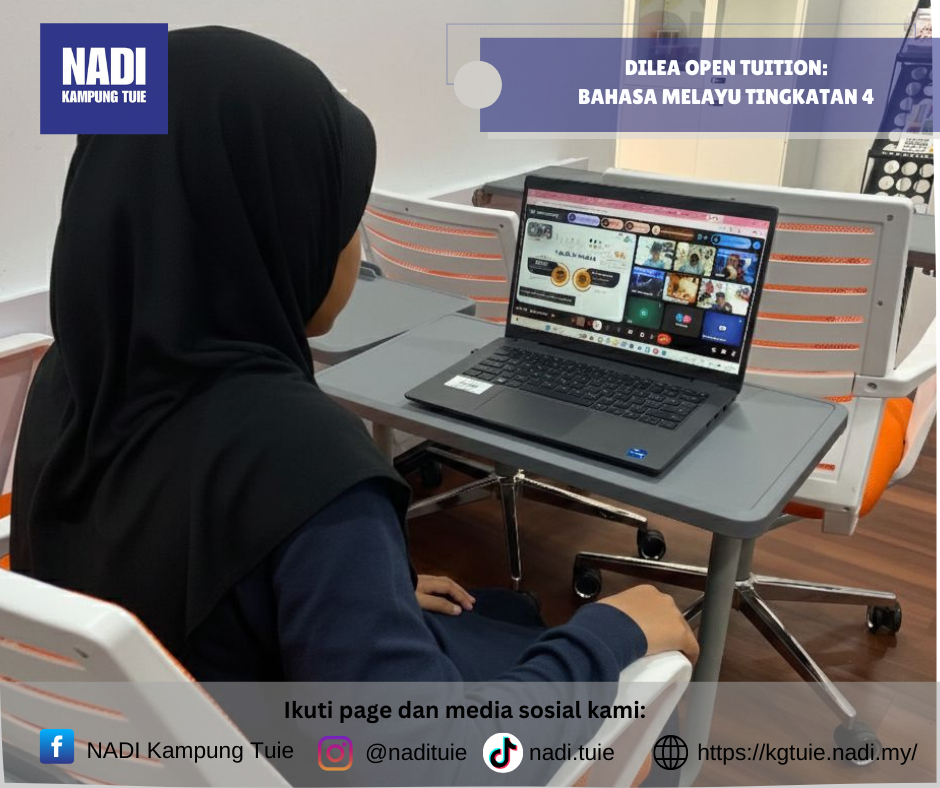 Program DILEA Open Tuition – Bahasa Melayu Tingkatan 4 telah dilaksanakan pada Khamis, 5 Februari 2026 jam 3.30 petang secara online, dengan pusat pelaksanaan bertempat di NADI Kampung Tuie.