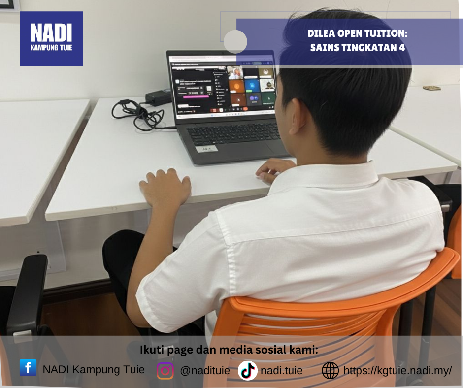 Program DILEA – Open Tuition Sains Tingkatan 4 telah dilaksanakan pada Khamis, 29 Januari 2026 bermula jam 3.30 petang secara online, dengan pusat pelaksanaan bertempat di NADI Kampung Tuie.