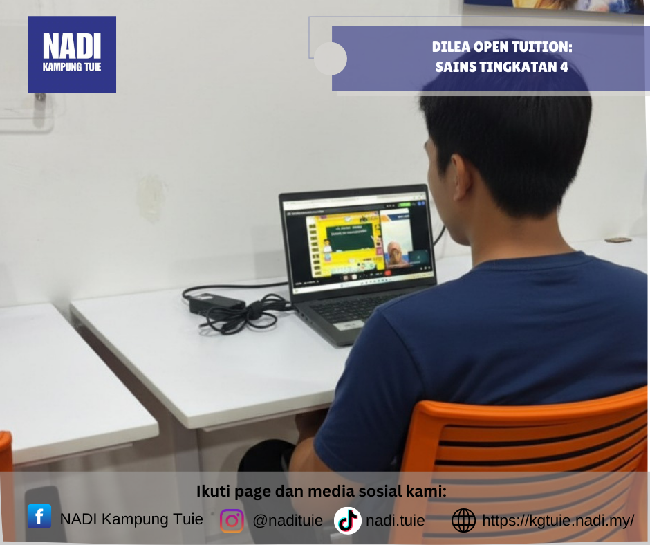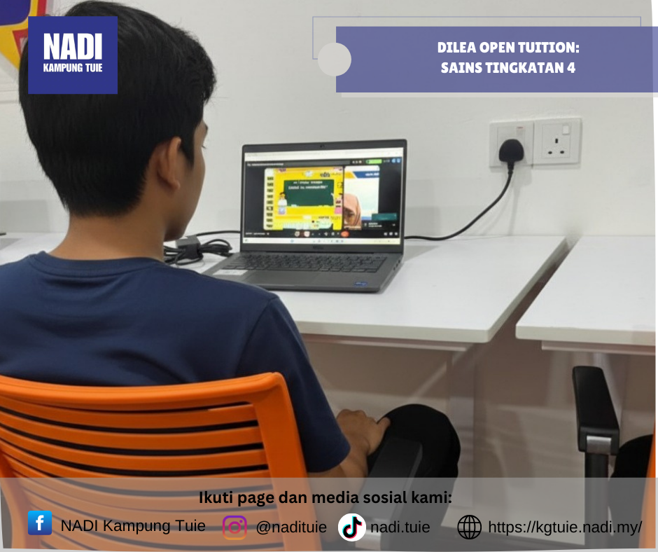 Program DILEA – Open Tuition Sains Tingkatan 4 telah dilaksanakan pada Khamis, 12 Februari 2026 jam 3.30 petang secara online, dengan pusat pelaksanaan bertempat di NADI Kampung Tuie.