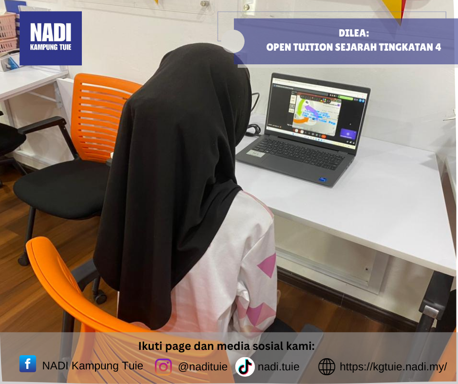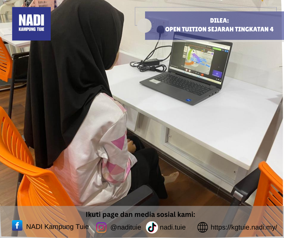 Program DILEA – Open Tuition Sejarah Tingkatan 4 telah dilaksanakan pada 23 Februari 2026 jam 2.30 petang secara online, dengan pusat pelaksanaan bertempat di NADI Kampung Tuie.