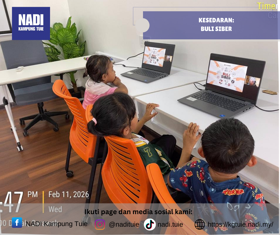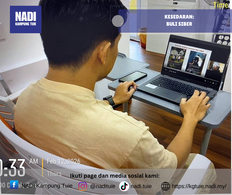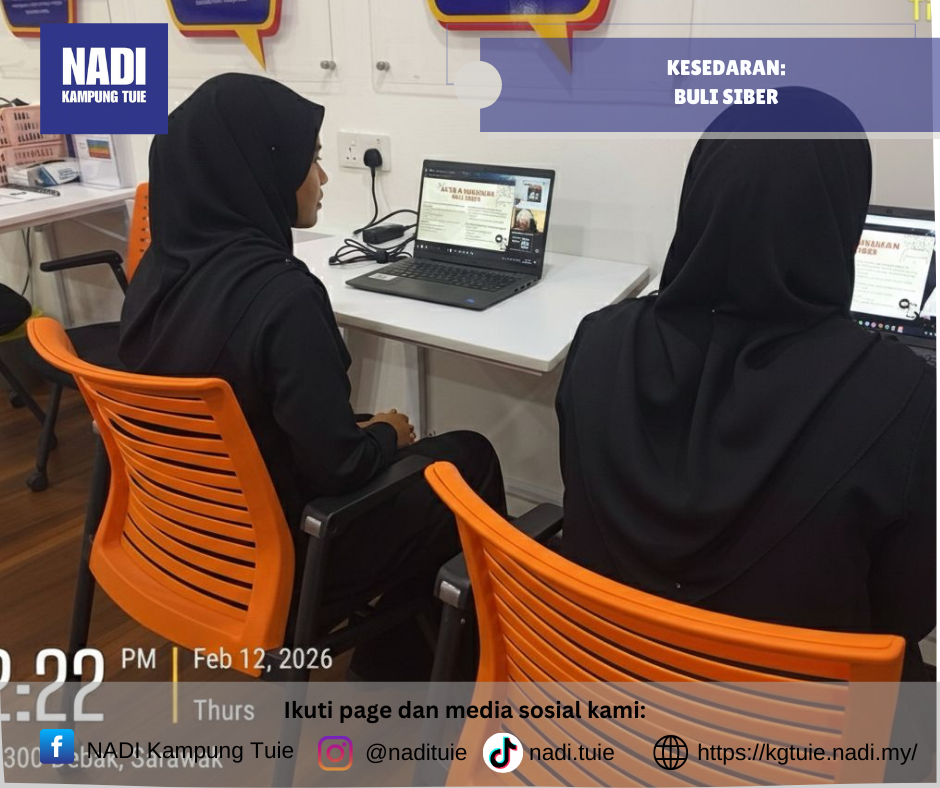Program Kesedaran – Taklimat Buli Siber telah dilaksanakan pada 10 dan 12 Februari 2026 secara online, dengan pusat pelaksanaan bertempat di NADI Kampung Tuie. Sesi dijalankan secara fleksibel bagi memberi peluang penyertaan yang lebih meluas dalam kalangan komuniti.