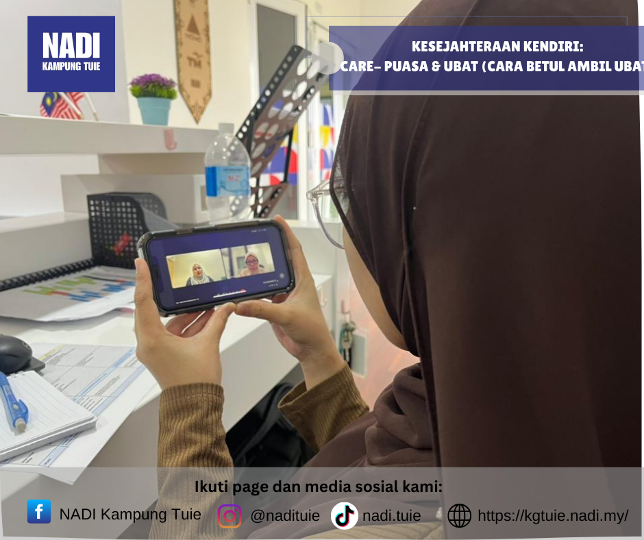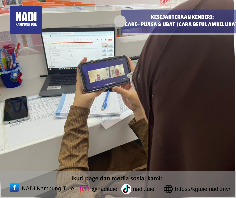 Program NADI Care – Puasa dan Ubat (Cara Betul Mengambil Ubat) telah dilaksanakan pada Selasa, 10 Februari 2026 jam 10.00 pagi secara online, dengan pusat pelaksanaan bertempat di NADI Kampung Tuie.