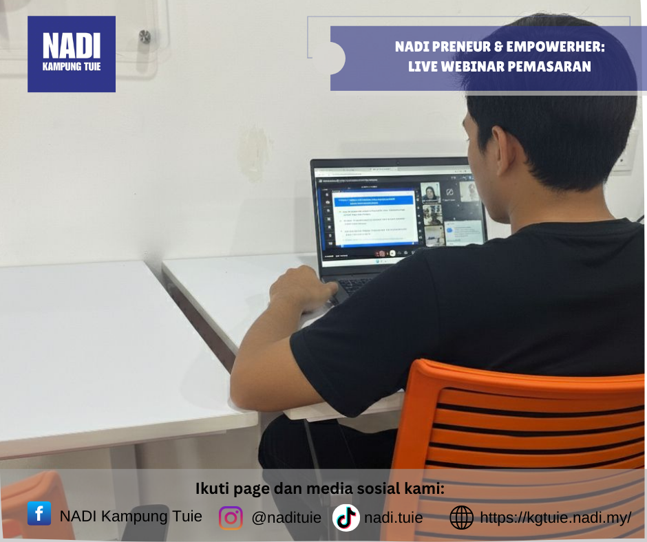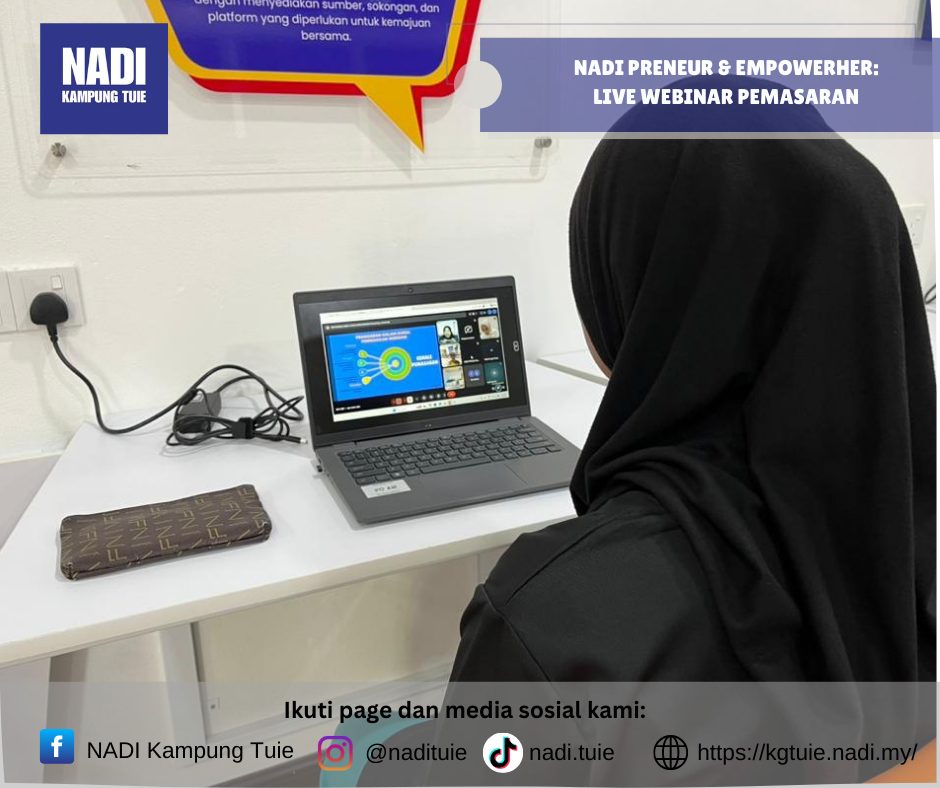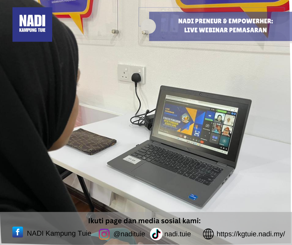 Program NADI Preneur & EmpowerHER – Live Webinar (Pemasaran) telah dilaksanakan pada Khamis, 5 Februari 2026 jam 11.00 pagi secara online, dengan pusat pelaksanaan bertempat di NADI Kampung Tuie.