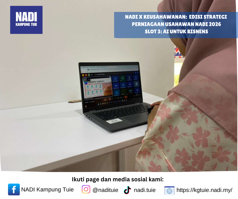 Program NADI X Keusahawanan: Edisi Strategi Perniagaan Usahawan NADI 2026 telah dijalankan secara dalam talian di NADI Kampung Tuie pada 27 dan 28 Oktober 2025. Program ini menghimpunkan beberapa slot pembelajaran yang memberi tumpuan kepada peningkatan kemahiran keusahawanan digital, pengurusan kewangan, serta strategi jenama bagi tahun 2026.