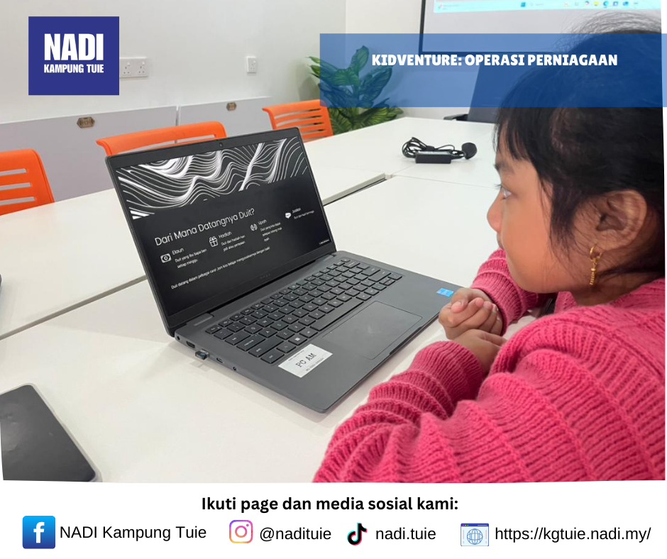 Kelas KidVenture Cohort 8 dengan topik Operasi Perniagaan telah berlangsung secara online dari NADI Kampung Tuie pada 29 November 2025. Seramai dua orang pelajar sekolah rendah menyertai sesi ini. Walaupun jumlah peserta kecil, kelas berjalan dengan sangat interaktif dan fokus.
