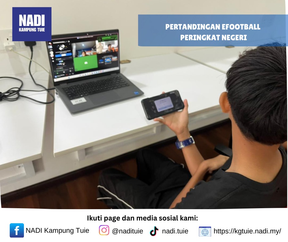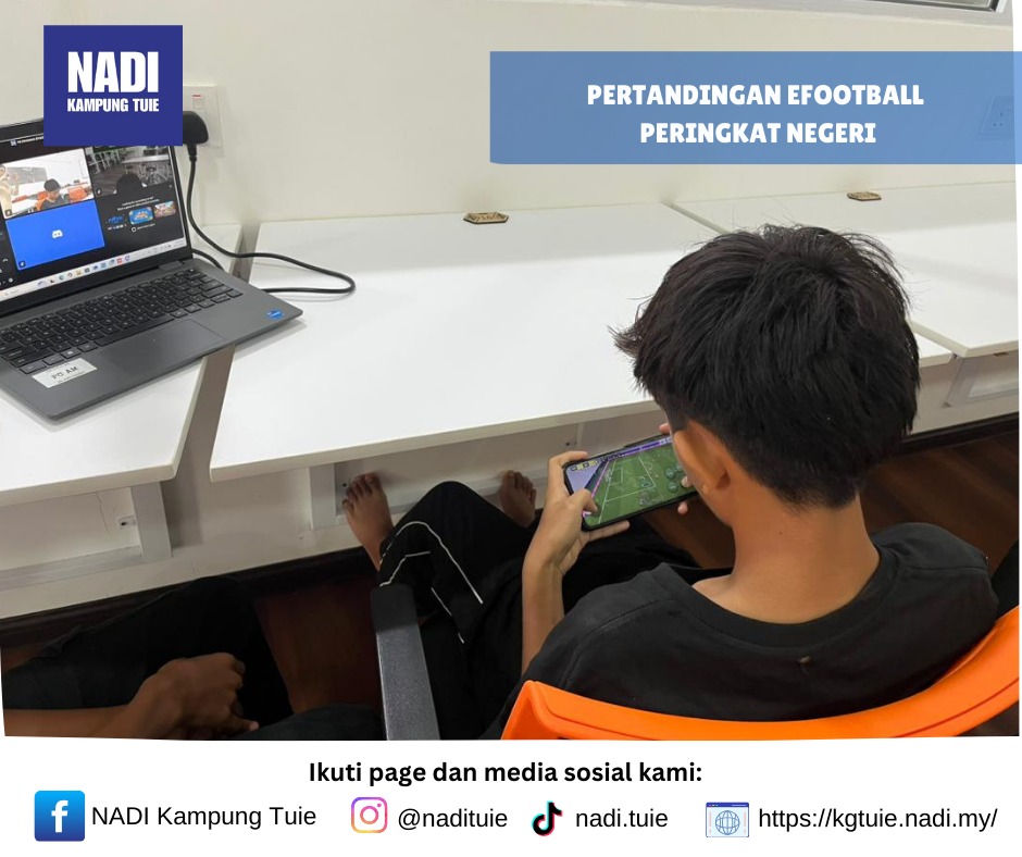 Satu Pertandingan eFootball Peringkat Negeri telah berlangsung pada Sabtu, 27 Disember 2025, dari jam 10.00 pagi hingga 3.00 petang, dengan penyertaan wakil pemain dari NADI Kampung Tuie. Aktiviti ini telah dilaksanakan bertempat di NADI Kampung Tuie.