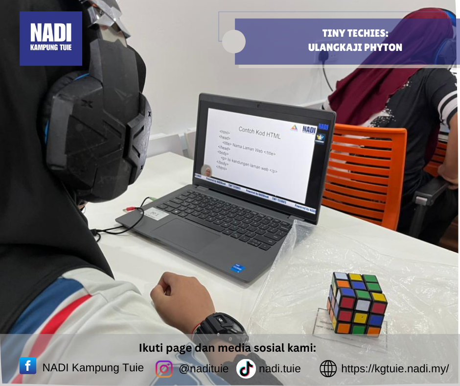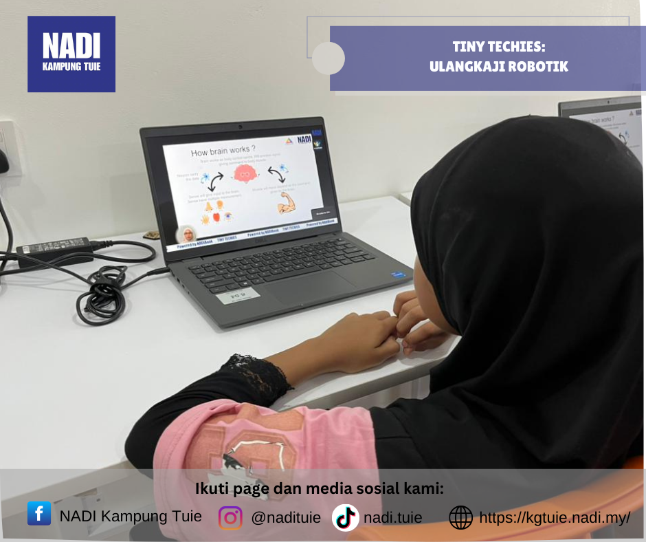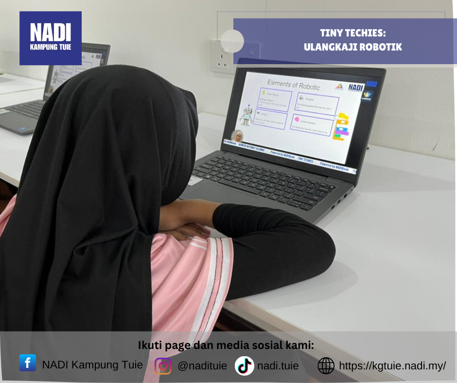 Program Tiny Techies – Ulangkaji Robotik (Sekolah Rendah) dan Ulangkaji Python (Sekolah Menengah) telah dilaksanakan pada Sabtu, 31 Januari 2026 dari jam 2.00 petang hingga 4.00 petang secara online, dengan pusat pelaksanaan bertempat di NADI Kampung Tuie.
